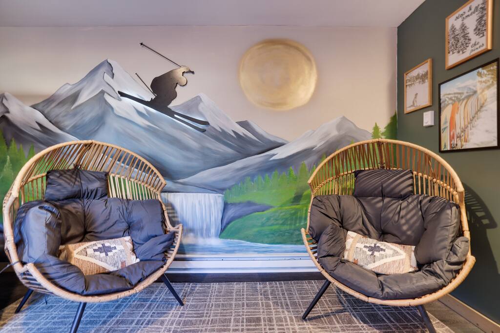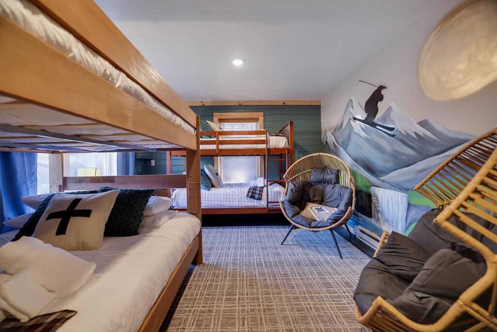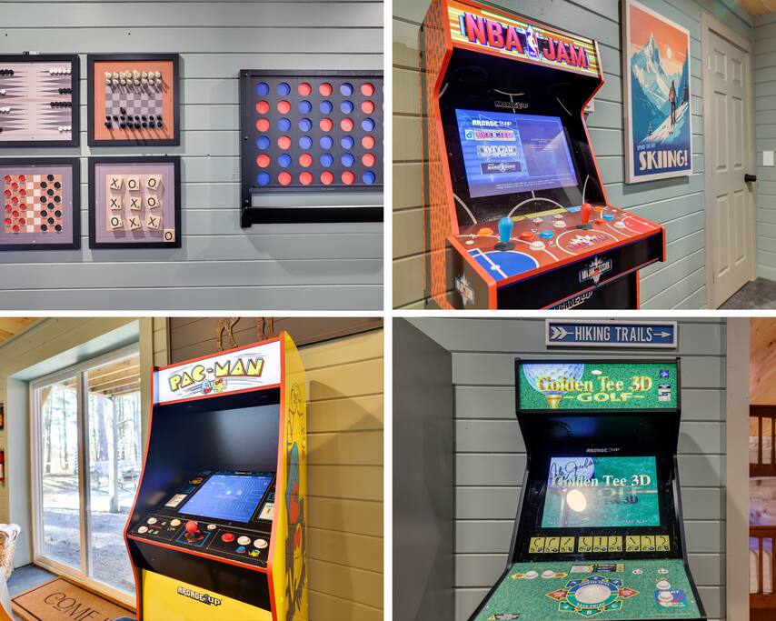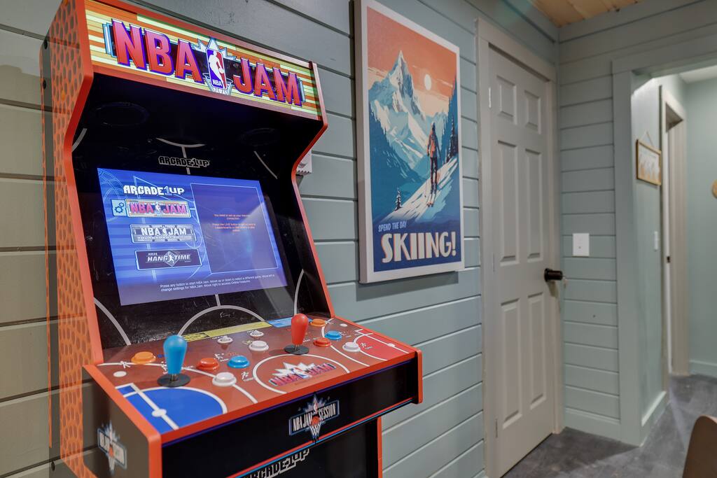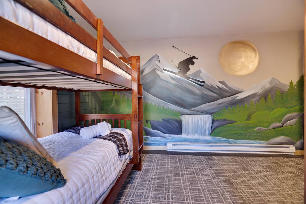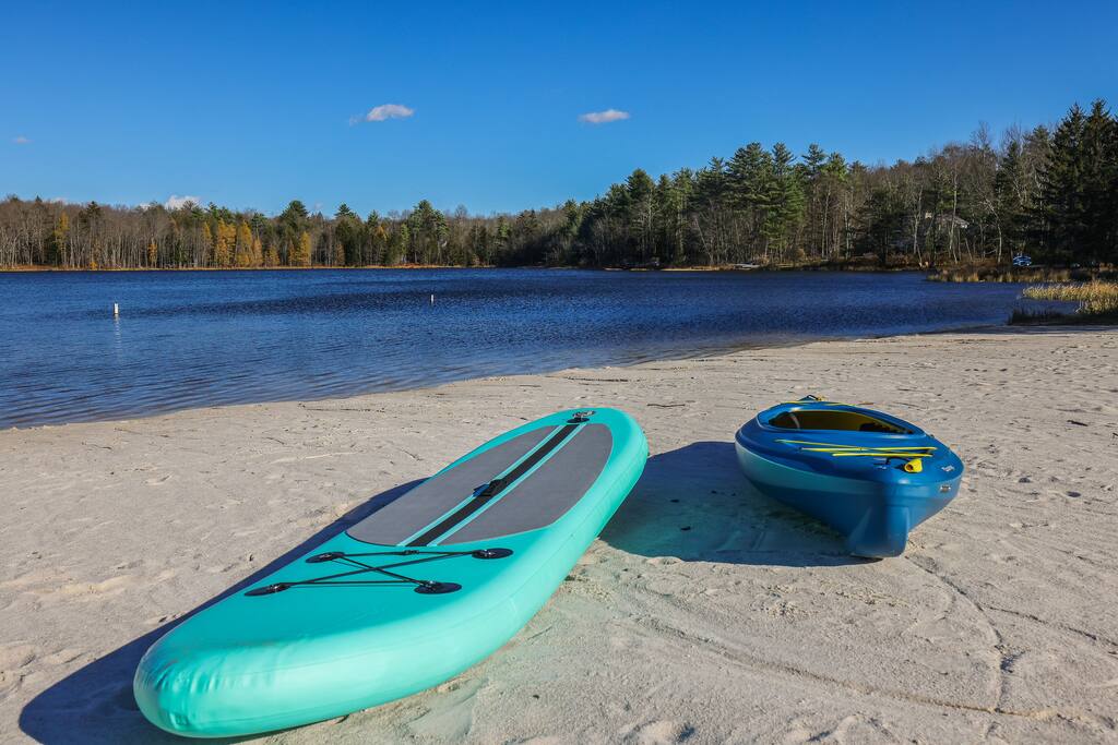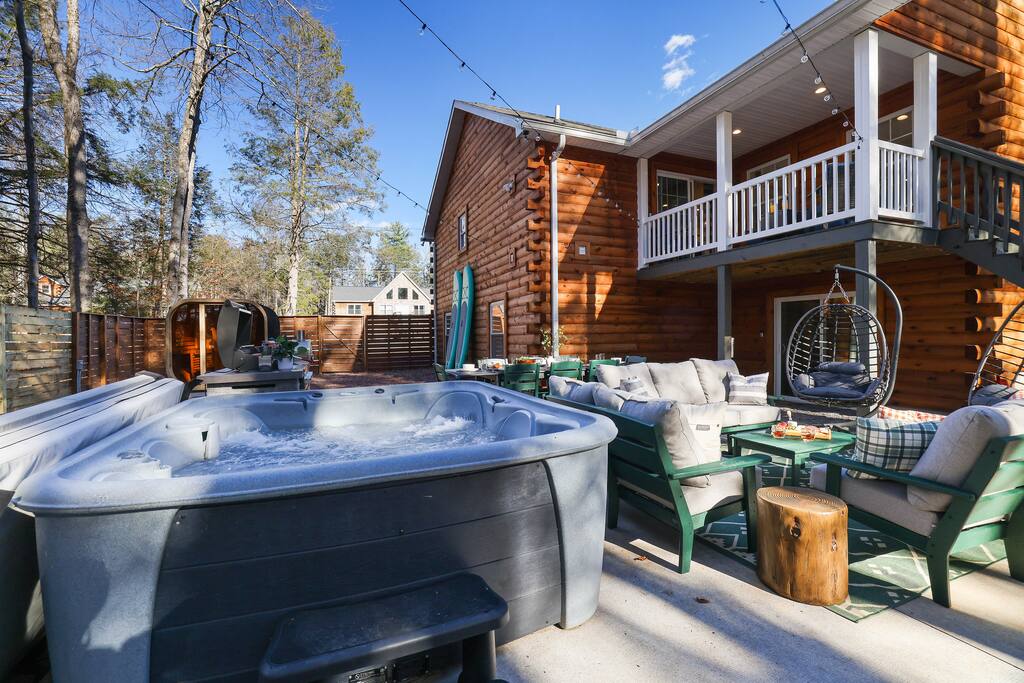 Welcome to The Painted Bear – Your Ultimate Luxurious Poconos Haven with 8 bedroom that sleeps 18 guests! **Outdoor Fun & Entertainment** 🔥 Outdoor Kitchen with BBQ Grill and 🍕Pizza Oven+ Outdoor Fridge ♨️ Hot Tub 🧖 Sauna 🪵 Firepit with seating for 10 🛶2 Private Kayaks and 2 Paddleboards (NO extra cost) on site with trolley (Memorial Day - Labor Day) 🎣 Fishing and relaxing on nearby lake with beach, 2 foldable beach chairs and beach towels 🪑 Outdoor Lounge Area w/ egg chairs and outdoor dining 🛝 Kids’ Natural Playscape with outdoor rope bridge, labyrinth maze, wooden logs to jump on with beach sand 🏖️ Hammock and corn hole **Indoor Fun & Enjoyment** 🎮 Epic Game room with home theater with 75” smart TV 🎱 Pool Table, Ping Pong, Air Hockey, Shuffle board, Wall and Board Games 🕹️ 3 Arcade game stations 🌟 Smart TV in each room with King or Queen Beds 👩🍳 Fully equipped Chef’s Kitchen 🍽 Spacious Dining Room with seating for 12, plus 5 on kitchen island and 6 at a breakfast table ☕ Coffee Bar for coffee enthusiasts: Breville Barista Express Espresso Machine, French Press, Keurig Pod Coffee Maker and classic drip coffee 🎨 IG-Worthy Murals: Hand-painted by a national acclaimed mural artist 💼 Dedicated workspace with an office desk and chair 🔥 AC in summer **Extras** 👶 Family-friendly: Pack 'N Play, booster highchair, children dinnerware, baby camera monitor, diaper changing table and diaper pail ⚡Free EV Charger on site 🚘 Ample parking for up to 12 vehicles 📶 Fast WiFi 🛏 Fresh linens, fluffy towels, and bathroom essentials all included for a comfortable stay 🏞️ Community private lake, with a beach area, kids play park, picnic tables, and BBQ stations 🛏 Sleeps 18 | 8 Bedrooms | 3 Bathrooms MAIN 1ST FLOOR with 3 bedrooms: 👑🛏 Room 1: Master Bedroom: King bed with ensuite full bath + jacuzzi 👑🛏 Room 2: King bed 👸🛏 Room 3: Queen bed GROUND FLOOR with 5 bedrooms: 👸🛏 Room 4: Queen bed 🛏🛏 Room 5: Kids Room: Twin on Twin bunk bed 🛏🛏 Room 6: Twin XL on Queen Bunk Bed 🛏🛏 Room 7: Twin on Twin Bunk and Queen on Queen Bunk bed 👑🛏 Room 8: King bed with baby pack and play **Prime Location** 📍 Quiet neighborhood with a forest vibe+walking distance from a private community lake 📍 4 miles/8 mins to Austin T. Blakeslee Natural Area 📍 7 miles/12 mins to Jack Frost Ski Resort & Big Boulder Mountain 📍 4 miles/7 mins to Pocono Raceway / Slingshot Rentals 📍 10-15 miles/20-30 mins to Camelback Mountain and Kalahari Resort Prioritizing Guest Safety, this home is equipped with smoke and carbon monoxide detectors, fire extinguishers, and outdoor security cameras. ✨ Book The Painted Bear now for a luxurious Poconos mountainous retreat! ⚠️ PLEASE NOTE 🕒 Instant Booking If you don't get have any reviews from other hosts, reach out before booking—we’d love to connect first. 📝 Booking Requirements To receive door access, this listing requires: - A signed rental agreement - The booker’s ID verification - A $1000 security deposit, collected via our property management system Hospitable 2 days before check-in and released 2 days after check-out provided no damage or excessive cleaning. **************** 🌲 LOCAL RESTAURANTS & ATTRACTIONS **Restaurants** Papa Santos’s Italian Restaurant & Pizzeria Jubilee Restaurant Woody’s Country House Murphy’s Loft Boulder View Tavern **Nearby Attractions** Lake Sinca - Private kayaks and paddle boards with trolley on site Austin T. Blakeslee Natural Area – A serene 130-acre woodland with hiking trails, waterfalls and creekside views Jack Frost Ski Resort & Big Boulder Mountain – Trails and scenic lift rides; skiing and snow-tubing in winter Pocono Raceway / Slingshot Rentals - Drive a 3-wheel Slingshot or catch a race event at the famous oval Camelback Mountain and Kalahari Resort - America’s largest indoor waterpark, Zip lines, mountain coaster rides, tubing and more Enjoy the best of both relaxation and adventure, all just a short distance from The Painted Bear! Township Registration #: 021314 Must be 25+ to rent, Max guests 18.
