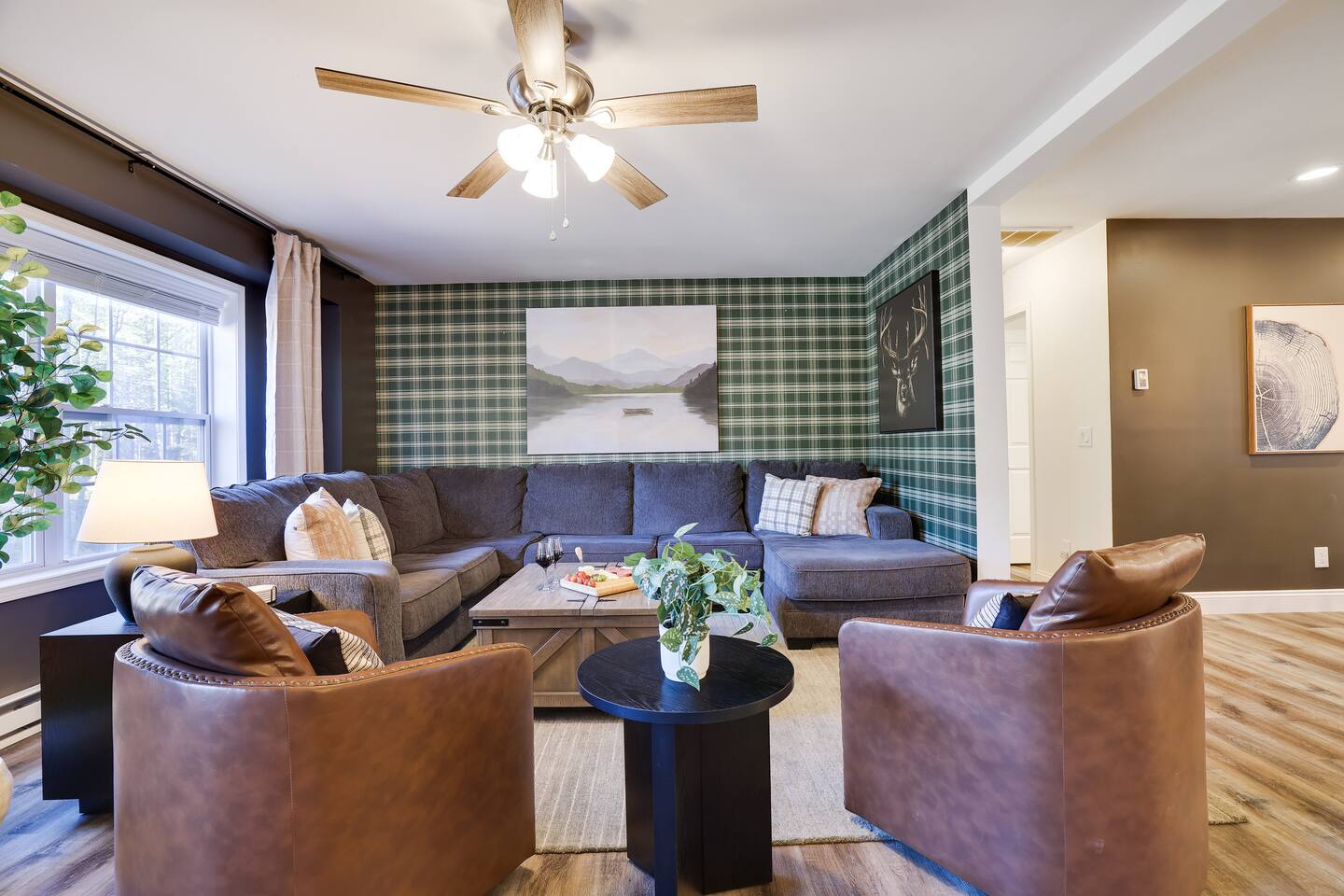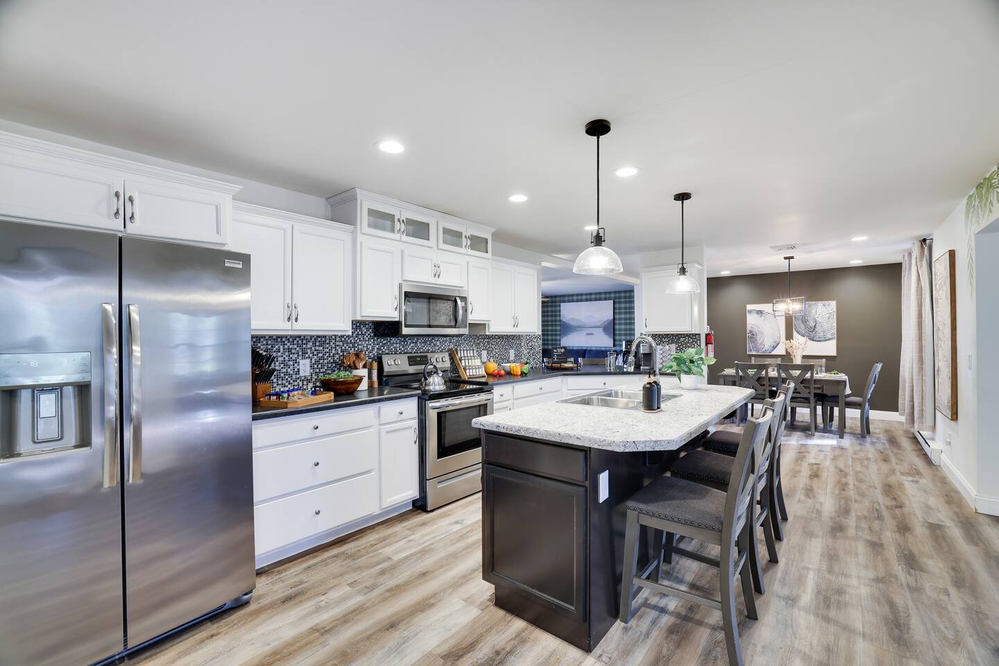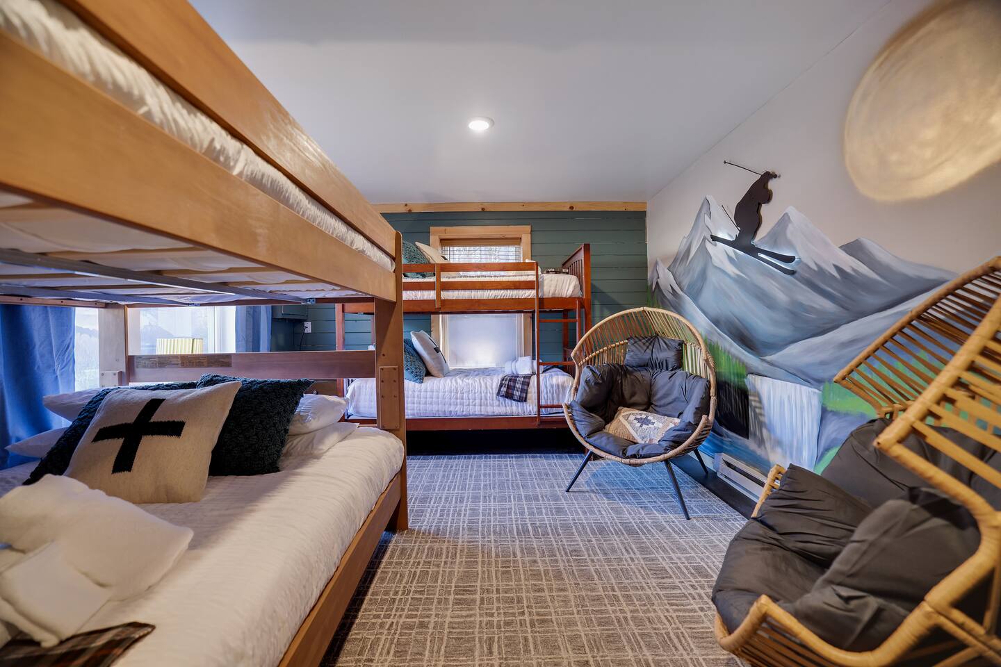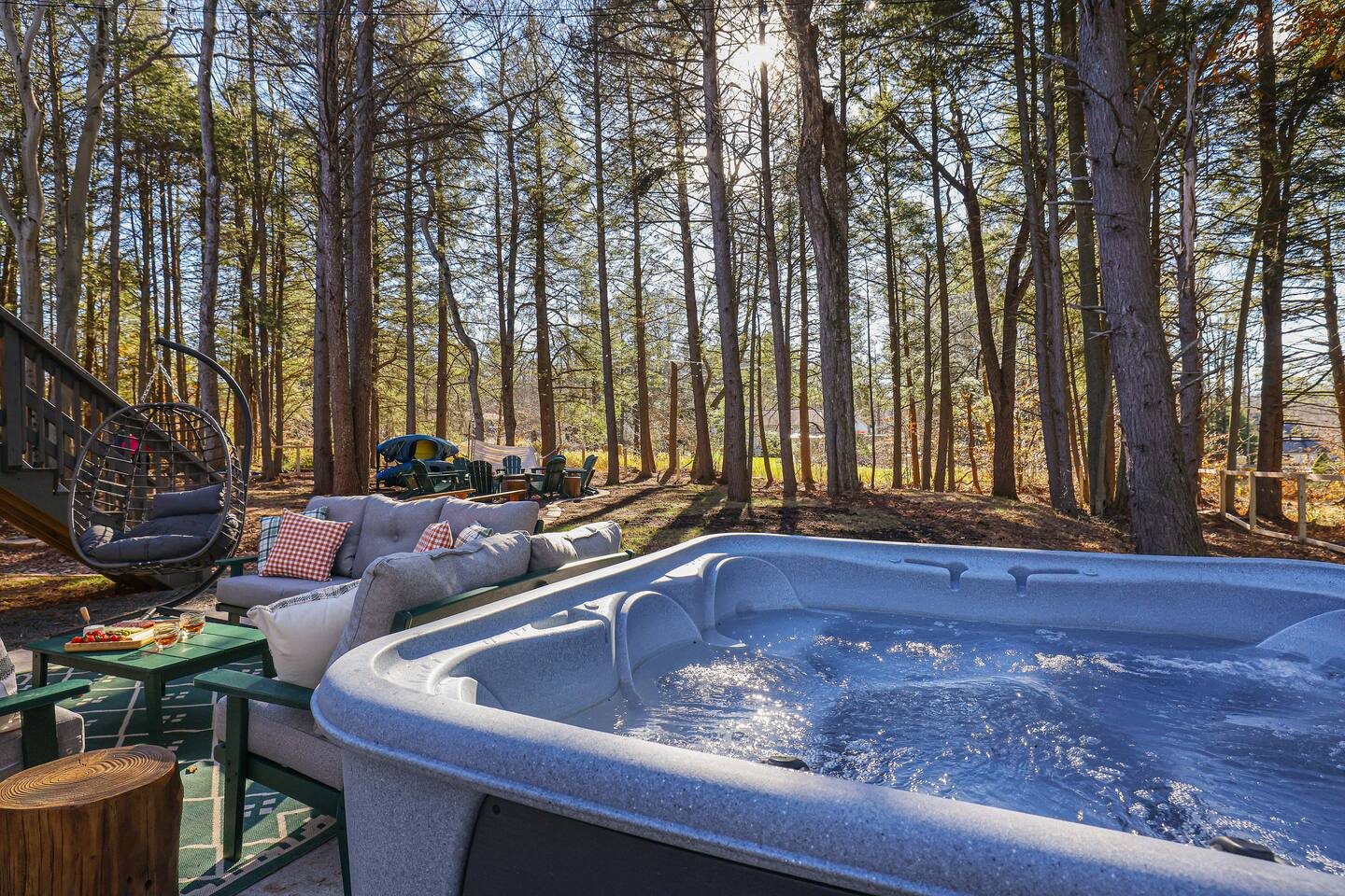 Discover this 8-BR luxury retreat designed for year-round fun and relaxation. Unwind in the sauna or hot tub after snowy days or lake adventures with our kayaks/paddleboards. Entertain in style with indoor and outdoor chef’s kitchens featuring a pizza oven. Savor gourmet coffee from Nespresso or Keurig. Compete in the game room with pool, ping pong, shuffleboard & arcade games, while kids explore the natural playscape. End the night in the cozy home theater or around the firepit under the stars.