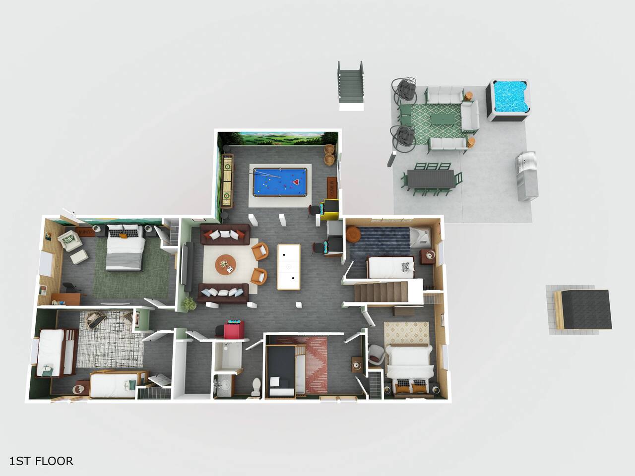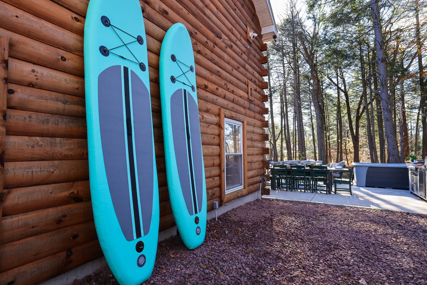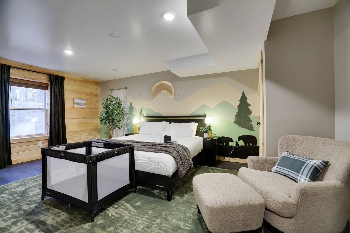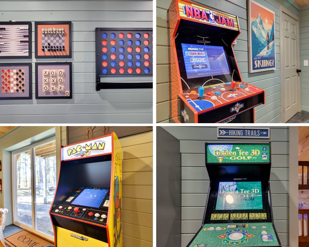 Welcome to Stay Painted Bear – Your Ultimate Luxurious Poconos Haven with 8 bedroom that sleeps 18 guests! **Outdoor Fun & Entertainment** 🔥 Outdoor Kitchen with BBQ Grill and 🍕Pizza Oven+ Outdoor Fridge ♨️ Hot Tub 🧖 Sauna 🪵 Firepit with seating for 10 🛶2 Private Kayaks and 2 Paddleboards (NO extra cost) on site with trolley (Memorial Day - Labor Day) 🎣 Fishing and relaxing on nearby lake with beach, 2 foldable beach chairs and beach towels 🪑 Outdoor Lounge Area w/ egg chairs and outdoor dining 🛝 Kids’ Natural Playscape with outdoor rope bridge, labyrinth maze, wooden logs to jump on with beach sand 🏖️ Hammock and corn hole **Indoor Fun & Enjoyment** 🎮 Epic Game room with home theater with 75” smart TV 🎱 Pool Table, Ping Pong, Air Hockey, Shuffle board, Wall and Board Games 🕹️ 3 Arcade game stations 🌟 Smart TV in each room with King or Queen Beds 👩🍳 Fully equipped Chef’s Kitchen 🍽 Spacious Dining Room with seating for 12, plus 5 on kitchen island and 6 at a breakfast table ☕ Coffee Bar for coffee enthusiasts: Breville Barista Express Espresso Machine, French Press, Keurig Pod Coffee Maker and classic drip coffee 🎨 IG-Worthy Murals: Hand-painted by a national acclaimed mural artist 💼 Dedicated workspace with an office desk and chair 🔥 AC in summer **Extras** 👶 Family-friendly: Pack 'N Play, booster highchair, children dinnerware, baby camera monitor, diaper changing table and diaper pail 🐶 Dog-friendly: 2’x3’ dog kennel, dog bowls & mat (see pet policy below) ⚡Free EV Charger on site 🚘 Ample parking for up to 8 vehicles 📶 Fast WiFi 🛏 Fresh linens, fluffy towels, and bathroom essentials all included for a comfortable stay 🏞️ Community private lake, with a beach area, kids play park, picnic tables, and BBQ stations 🛏 Sleeps 18 | 8 Bedrooms | 3 Bathrooms MAIN 1ST FLOOR with 3 bedrooms: 👑🛏 Room 1: Master Bedroom: King bed with ensuite full bath + jacuzzi 👑🛏 Room 2: King bed 👸🛏 Room 3: Queen bed GROUND FLOOR with 5 bedrooms: 👸🛏 Room 4: Queen bed 🛏🛏 Room 5: Kids Room: Twin on Twin bunk bed 🛏🛏 Room 6: Twin XL on Queen Bunk Bed 🛏🛏 Room 7: Twin on Twin Bunk and Queen on Queen Bunk bed 👑🛏 Room 8: King bed with baby pack and play **Prime Location** 📍 Quiet neighborhood with a forest vibe+walking distance from a private community lake 📍 4 miles/8 mins to Austin T. Blakeslee Natural Area 📍 7 miles/12 mins to Jack Frost Ski Resort & Big Boulder Mountain 📍 4 miles/7 mins to Pocono Raceway / Slingshot Rentals 📍 10-15 miles/20-30 mins to Camelback Mountain and Kalahari Resort Prioritizing Guest Safety, this home is equipped with smoke and carbon monoxide detectors, fire extinguishers, and outdoor security cameras. ✨ Book Stay Painted Bear now for a luxurious Poconos mountainous retreat! ⚠️ PLEASE NOTE 🕒 Instant Booking If you don't get have any reviews from other hosts, reach out before booking—we’d love to connect first. 📝 Booking Requirements To receive door access, this listing requires: - A signed rental agreement - The booker’s ID verification - A $1000 security deposit, collected via our property management system Hospitable 2 days before check-in and released 2 days after check-out provided no damage or excessive cleaning. 🐶 Pet Policy • Up to 2 house-trained dogs (age 2+) with approval. A third may be considered for an additional fee. • No cats or other pets • Rabies vaccination & flea/tick prevention required • Add no. of pets under “Guests > Pets” to apply the pet fee • Provided: Dog kennel (24"x36"), bowls, mat for pets **************** 🌲 LOCAL RESTAURANTS & ATTRACTIONS **Restaurants** Papa Santos’s Italian Restaurant & Pizzeria Jubilee Restaurant Woody’s Country House Murphy’s Loft Boulder View Tavern **Nearby Attractions** Lake Sinca - Private kayaks and paddle boards with trolley on site Austin T. Blakeslee Natural Area – A serene 130-acre woodland with hiking trails, waterfalls and creekside views Jack Frost Ski Resort & Big Boulder Mountain – Trails and scenic lift rides; skiing and snow-tubing in winter Pocono Raceway / Slingshot Rentals - Drive a 3-wheel Slingshot or catch a race event at the famous oval Camelback Mountain and Kalahari Resort - America’s largest indoor waterpark, Zip lines, mountain coaster rides, tubing and more Enjoy the best of both relaxation and adventure, all just a short distance from Stay Painted Bear! Township Registration #: 021314 Must be 25+ to rent, Max guests 18.