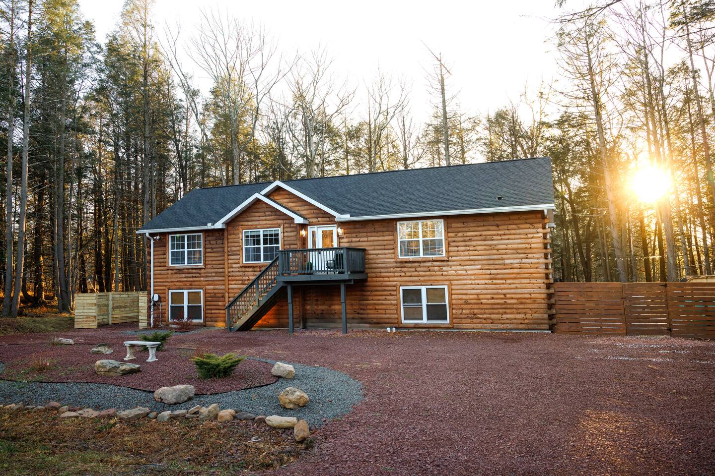 ~Check-in and Check-Out~ Standard check-in time is 4:00 PM and check-out is 10:00 AM. Early check-in and late check-out may be available for a small fee, subject to cleaning schedules. Availability is confirmed the day prior. ~Refunds~ We want your stay to be perfect, but please understand that we cannot issue refunds for factors beyond our control, such as weather conditions. We highly recommend guests purchase trip insurance. This home is in a wooded, mountain setting. Guests should use caution when outdoors and be mindful of uneven terrain, wildlife, and weather conditions. This Poconos mountain home features lush outdoor spaces. To help keep bugs and critters out, please keep doors and windows closed at all times. While we have regular professional pest control, occasional sightings of insects or small pests—especially outdoors—are possible and not uncommon in a natural setting. Refunds will not be issued for pest encounters or outdoor debris. Violations of our house rules may lead to guests having to leave prematurely without a refund. For property protection and insurance purposes, security cameras monitor the front and back entrances and must remain active at all times.
